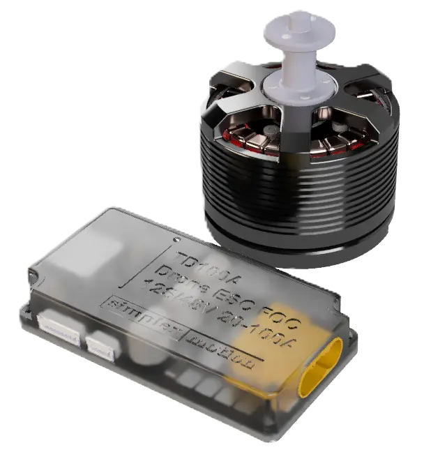Voor drones en UAV-systemen ontwikkelt Simplex Motion speciale motoren en ESC-oplossingen met een hoge efficiëntie en laag gewicht. Dankzij Field Oriented Control bieden deze controllers een sterke stabiliteit, efficiënte commutatie en langere vluchtduur.